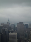 Počasí nebylo zcela ideální, takže o nějakých dalekých výhledech jsme si mohli nechat pouze zdát, ale stále to bylo lepší než počasí, které nás čekalo večer. Vstupenka totiž umožňuje ve stejný den ještě jeden vstup na vyhlídku a to večer po desáté hodině. Za deště, zimy, větru a mlhy jsme tento zážitek absolvovali a fotografie zde pořízené přikládáme spíše pro dokreslení atmosféry. Večerní cestu New Yorkem do hotelu jsme si oživili ještě procházkou, protože naším vstupem z mrakodrapu na pevnou půdu přestalo pršet a udělal se příjemný večer s dobrou viditelností.