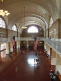 Trajekt nás dále zavezl na Ellis Island, kde jsme ihned po výstupu šli do imigrantského muzea. Ellis Island byl po více než půl století největším americkým střediskem, jímž prošlo množství imigrantů, kteří byli buď ihned vpuštěni na území USA, nebo byli podrobněji prověřováni (z hlediska politického, sociálního i zdravotního) a mohli zde strávit i několik měsíců. V interiérech Ellis Islandu jsme opět - stejně jako včera v Metropolitním muzeu - značně promrzli. Americká vášeň pro klimatizaci, hraničící s druhem určité posedlosti, nám znovu zapříčinila prochladnutí ve sluncem zalitém dni, kdy venku bylo snad kolem třiceti stupňů a v muzeu nemohlo být snad ani dvacet. Ještě že náš odolný organismus zatím všem těmto nástrahám zdárně čelí.