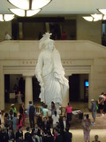 Prohlídka Kapitolu pak probíhala v dosti hektickém tempu, protože návštěvnický zájem je zřejmě obrovský. Po úvodním třinácti minutovém filmu opěvujícím americký nacionalismus a demokracii symbolisované Kongresem, nám byla přidělena sluchátka a průvodce, s nímž jsme prošli tři hlavní rerezentativní místnosti Kongresu plné soch a obrazů.