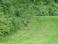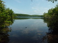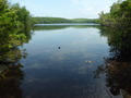 Navzdory všudypřítomným výstražným cedulím jsme žádného medvěda černého nepotkali, zato jsme viděli krásné modré ptáky, králíky apod. a cítili na svém těle bodavý hmyz. Několikrát jsme přebrodili jakýsi potok tam a zpátky (v naivní víře, že značení nás skutečně vede těmi nejlepšími možnými cestami:-)) a viděli i první amrický vodopádek, takže až zhruba za týden dospějeme k Niagaře, budeme již mít za sebou tuto "vodopádovou průpravu". Došli jsme jezeru Snfish Pond a jiným obloukem jsme se navrátili zpět do kempu. Přišli jsme dosti brzy a tak jsme volný čas využili k lenošení proloženému jídlem a filmem.